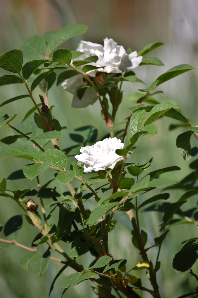 Juhannusruusu aika etunenässä on ollut jo useamman päivän kukassa, mutta eivät tule kaukana seuraavatkaan! Luumuruusu 'Ainolassa' on mahtavasti nuppuja, ja myös pörriäiset viihtyvät: